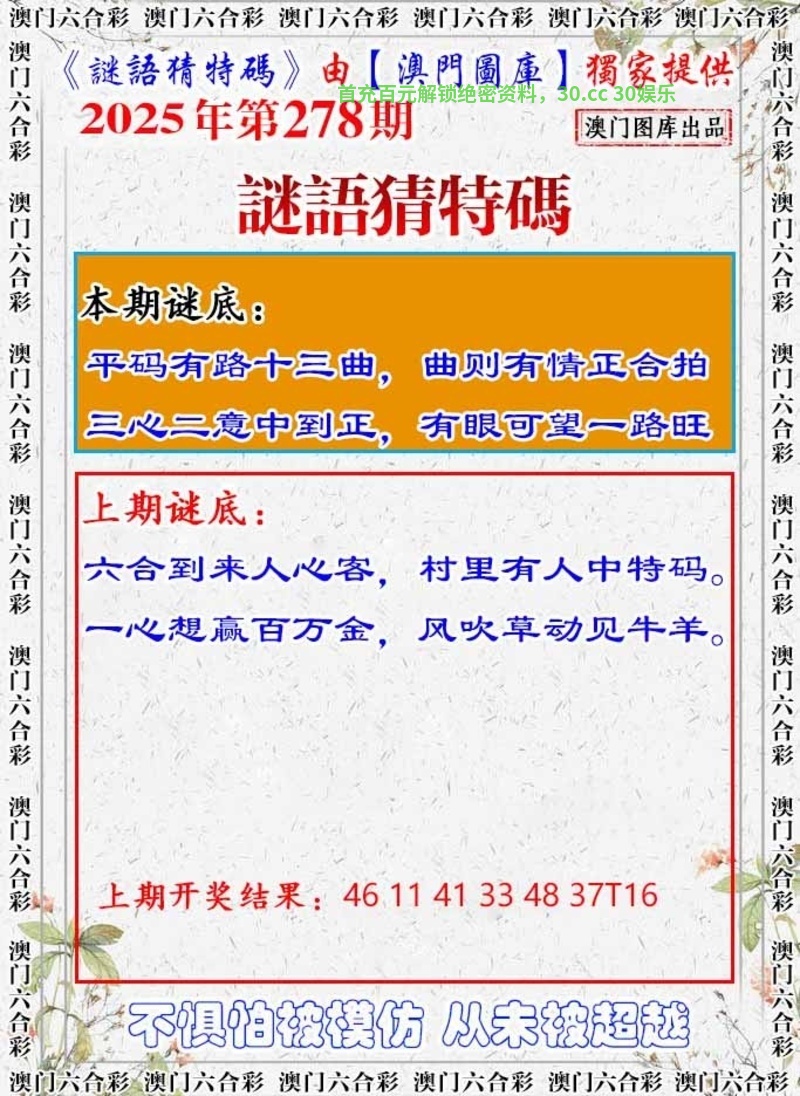 278期:【謎語猜特碼】