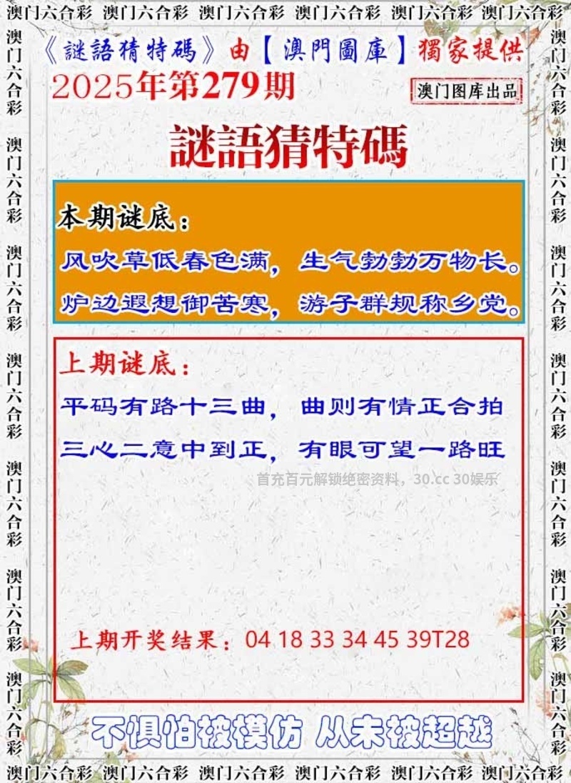 279期:【謎語猜特碼】