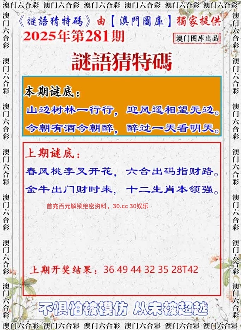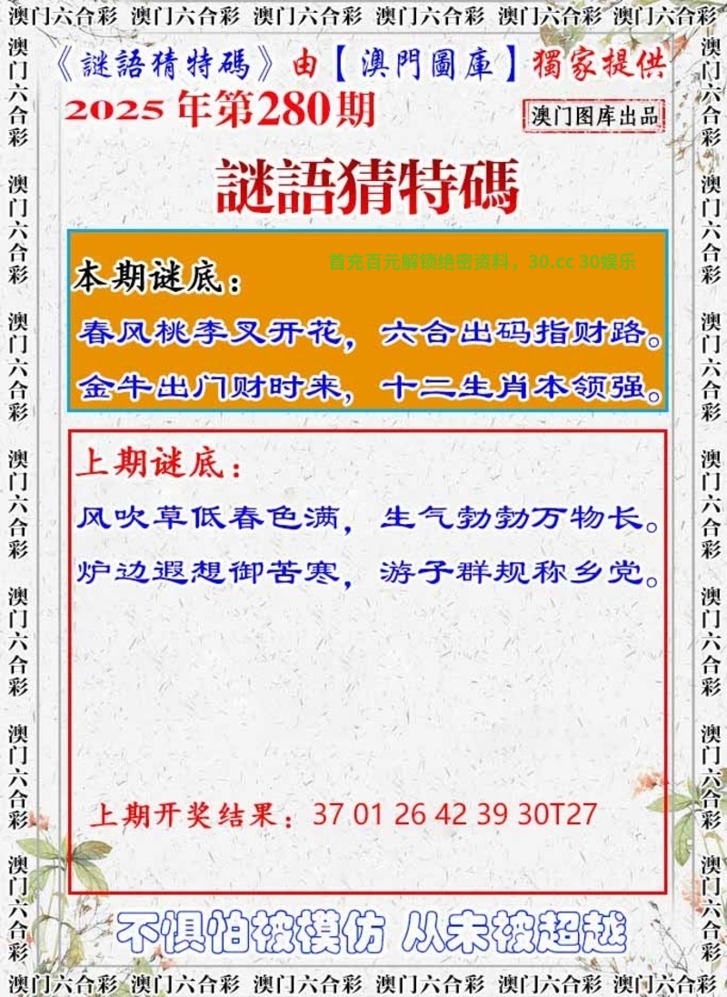 280期:【謎語猜特碼】